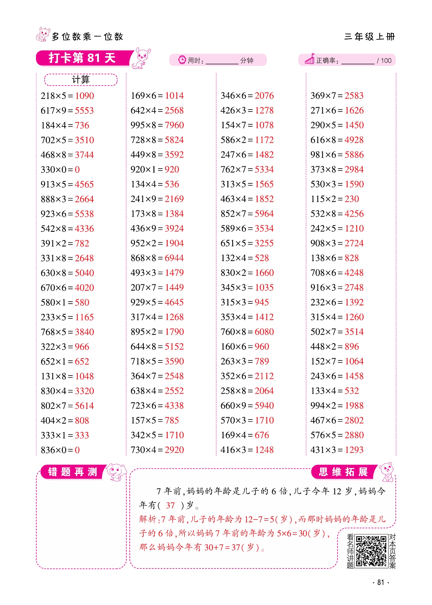 - 答案+讲题-81-人教数学三上-口算题10000道